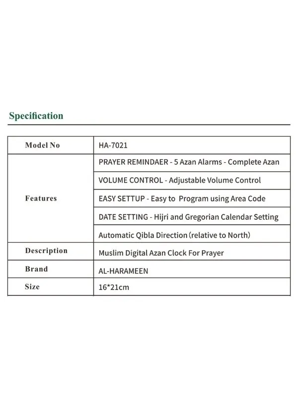 HA-7021 Azan Clock by Al Harameen
